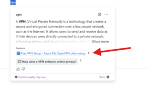 • Integrates with external repositories to expand the scope of searches, including: Google Drive, SharePoint, Slack, GitHub, Microsoft Teams, Dropbox, Notion, Box, Asana, Outlook Mail, Smartsheet, and custom web pages.