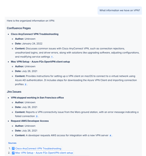 • Rovo: a standalone product based on Atlassian AI that allows you to work with external repositories (SharePoint, Google Drive, etc.).
