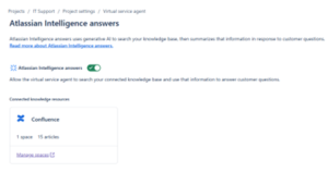 In Jira Service Management (JSM) support portals, AI extracts data from the knowledge base in Confluence and generates responses for customers.